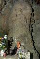 駐車スペース無し、県道路肩に駐車し 80段ほど急な石段を登った岩肌に像高 2m余の不